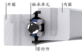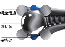 基于該原理:軸承的核心部件由四條鋼絲滾道組成。采用專門研發(fā)的磨削工藝,使其滾道與滾珠直徑完全匹配,滾動(dòng)體在四條鋼絲滾道上平滑滾動(dòng),不與周圍結(jié)構(gòu)發(fā)生接觸。借助四點(diǎn)接觸幾何結(jié)構(gòu),可承受來自任何方向的負(fù)荷。