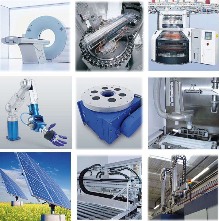 Franke產(chǎn)品在太陽能、醫(yī)療、紡織、玻璃、木業(yè)、石材、環(huán)保、機(jī)床、食品、包裝、自動(dòng)化、航空航天等行業(yè)擁有廣泛的應(yīng)用。在一些行業(yè)擁有獨(dú)特的優(yōu)勢(shì),例如:計(jì)算機(jī)X射線斷層掃描成像儀(CT)、加工中心、紡織機(jī)、芯片制造機(jī)器、旋轉(zhuǎn)式分度臺(tái)及機(jī)器人等。